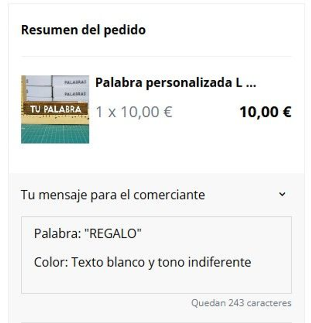 Para las palabras personalizadas hay un tiempo de fabricación de 5 días previo al envío.