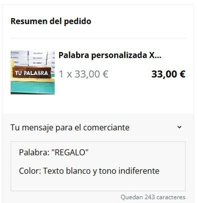 Para las palabras personalizadas hay un tiempo de fabricación de 5 días previo al envío.